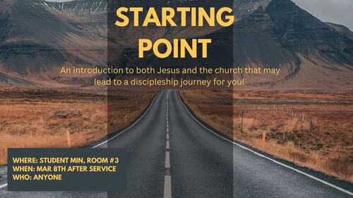 March 8- Join us in Student Min. room #3 for Starting Point, right after service